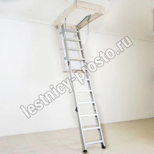 Лестница чердачная складная алюминиевая 3-х секционная. Ступени полностью выполнены из алюминия.