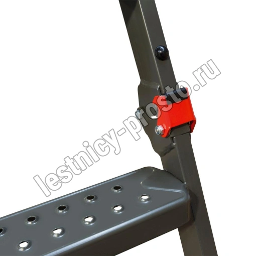 Складная трехсекционная металлическая лестница выручит в помещениях с высоким потолком (до 3660 мм). Лестницу легко собрать самостоятельно.