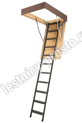 Чердачная металлическая лестница LMS – это надежная складная конструкция, состоящая из марша и термоизоляционной крышки, изготовленной из ДВП и окрашенной в бежевый цвет. Герметичность всей конструкции достигается благодаря утеплению крышки люка и контурному уплотнению по периметру, что предотвращает возможные теплопотери. Чердачную лестницу очень легко разложить и сложить благодаря наличию специального стержня с четырехугольной насадкой.