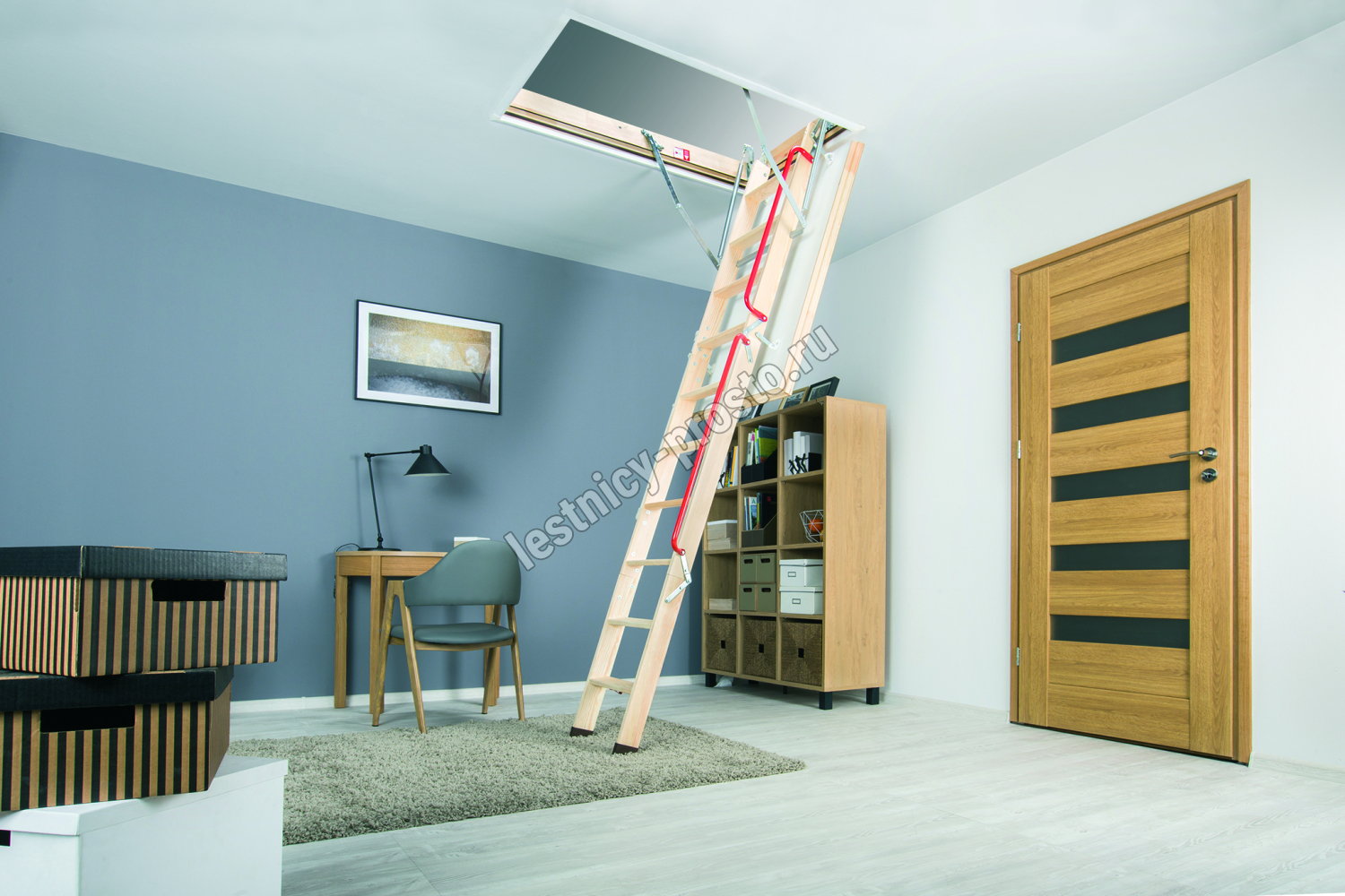 Складная чердачная лестница LWL имеет повышенные теплоизоляционные параметры и высокий класс герметичности. Утеплённая крышка люка белого цвета. Лестница оборудована специальным механизмом LXM-3 и крючком на нижней ступени марша для стержня, которые в комплексе обеспечивают лёгкость и плавность открывания и закрывания лестницы. Снабжена дополнительным поручнем для безопасного подъёма.