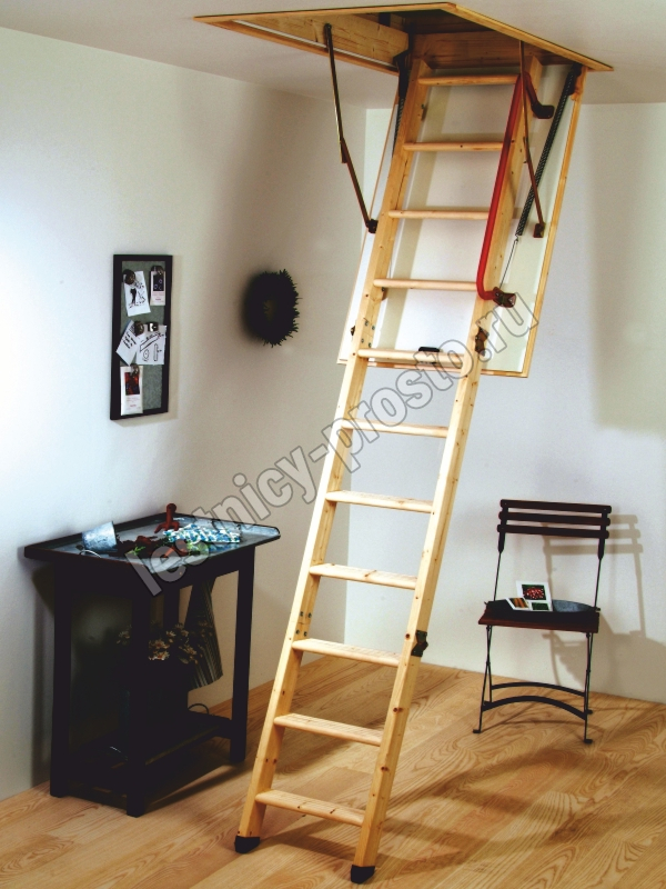 HOBBY 26 - трехсекционная утепленная лестница из скандинавской медленнорастущей ели, отличающейся повышенной прочностью, ступени из сосны, имеют антискользящие насечки.