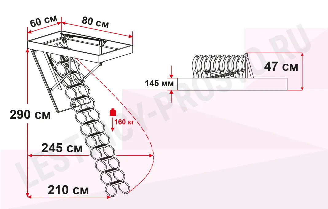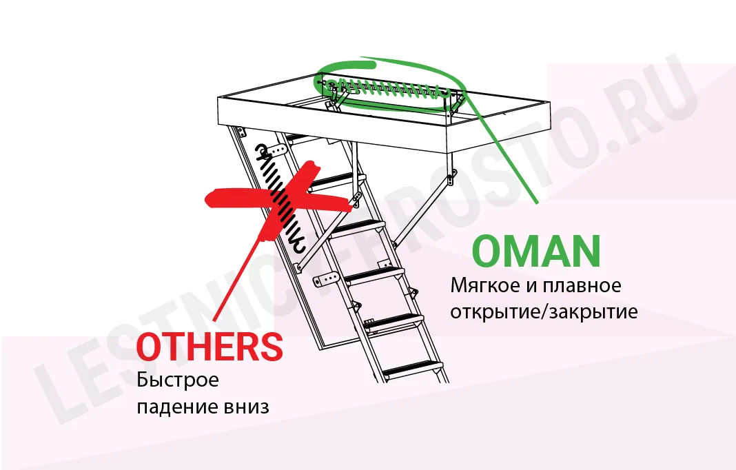 Чердачная лестница с люком OMAN NOZYCOWE TERMO 60х80 см, h-290 см