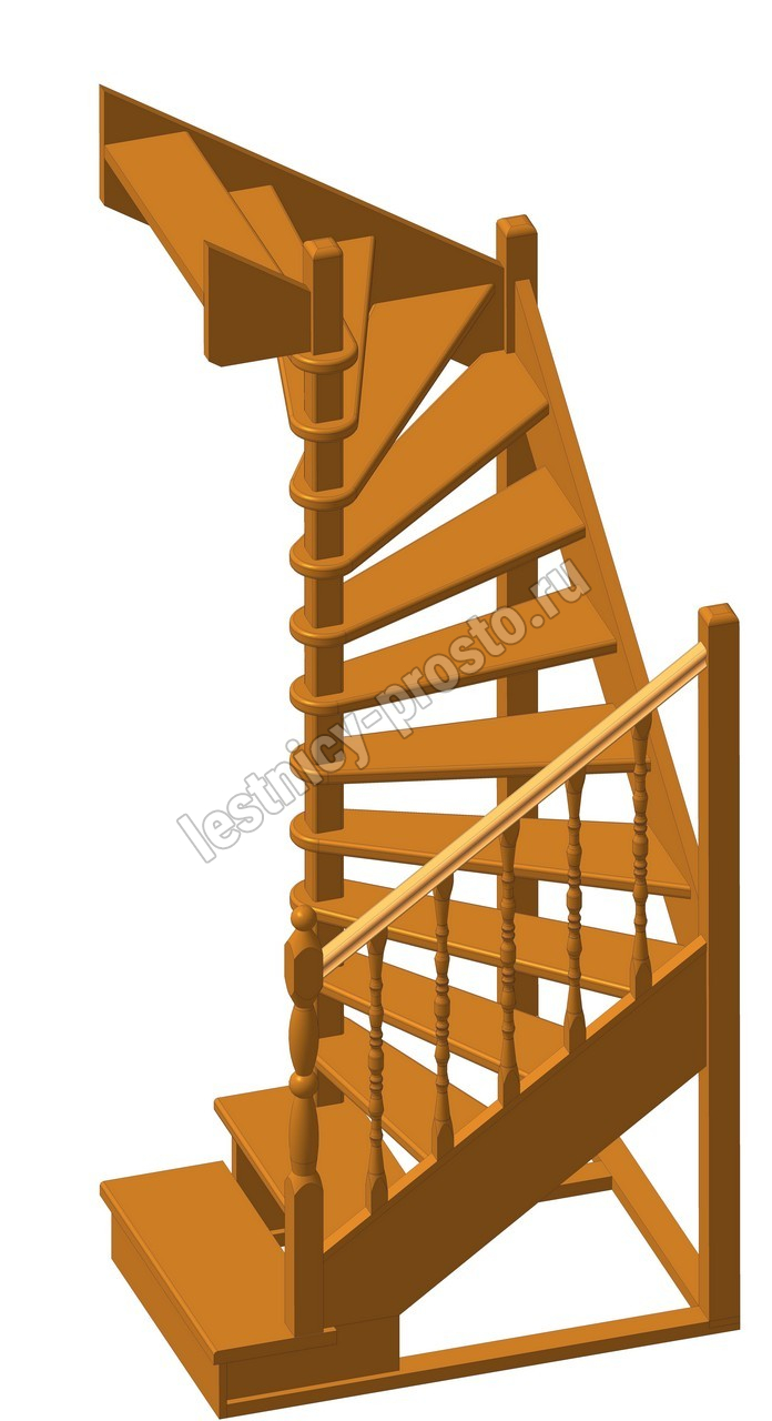 Удобная поворотная лестница на второй этаж. Дополнительные ограждения по первому маршу обеспечивают безопасность при подъеме и спуске, кроме того, небольшой угол подъема открывает всю площадь ступеней. Монтаж осуществляется силами двух человек на объекте по указаниям, приведенным в паспорте на лестницу.