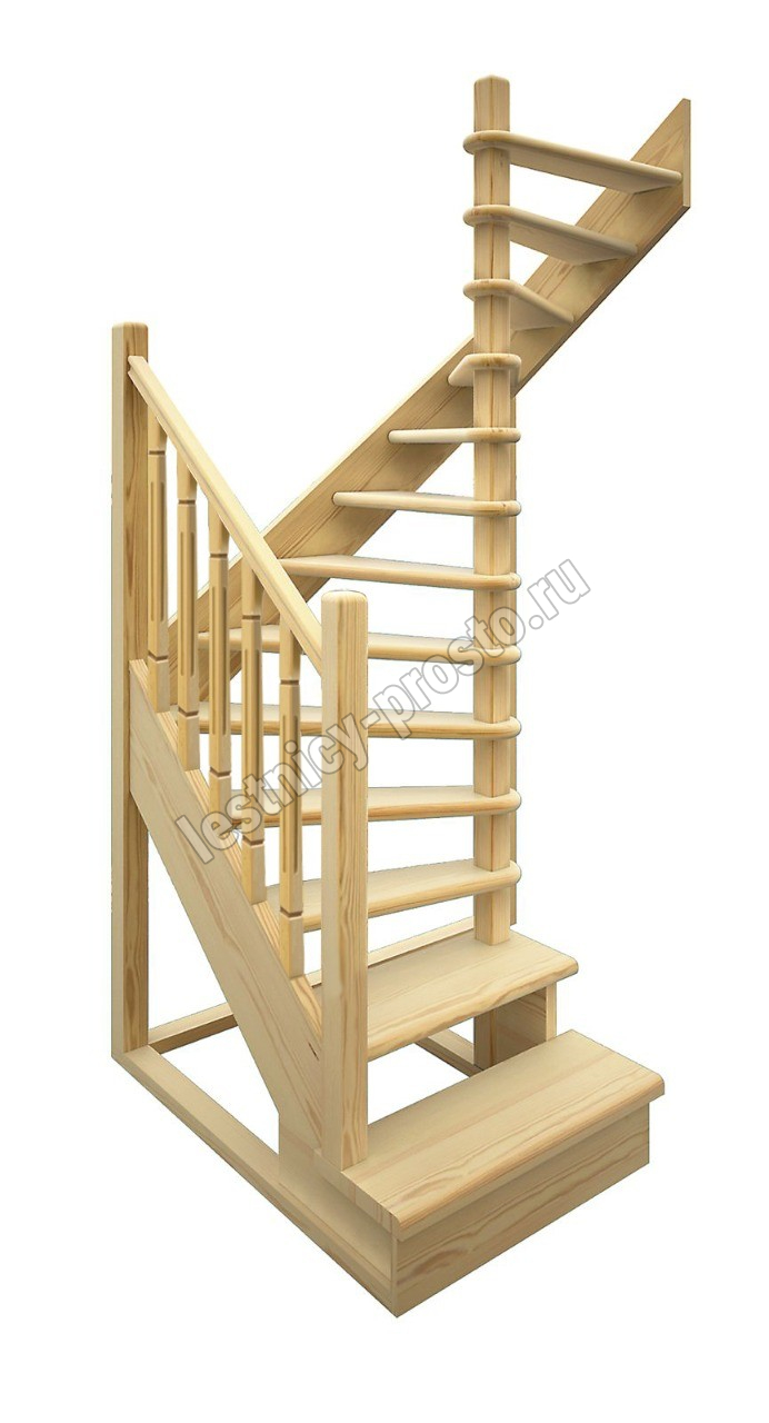 Базовый комплект включает в себя деревянные элементы лестницы и ограждения без какого-либо покрытия. Поставляется в разобранном виде, упакованная в ящик. Монтаж производится силами двух человек, в соответствии с указаниями, приведёнными в паспорте лестницы.