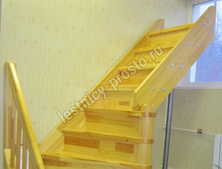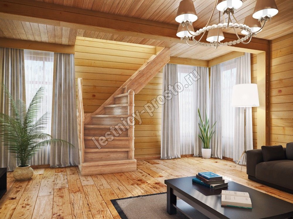 Компактная комфортная лестница с подступенками. Базовый комплект включает в себя деревянные элементы лестницы без какого-либо покрытия. Лестница поставляется в разобранном виде.