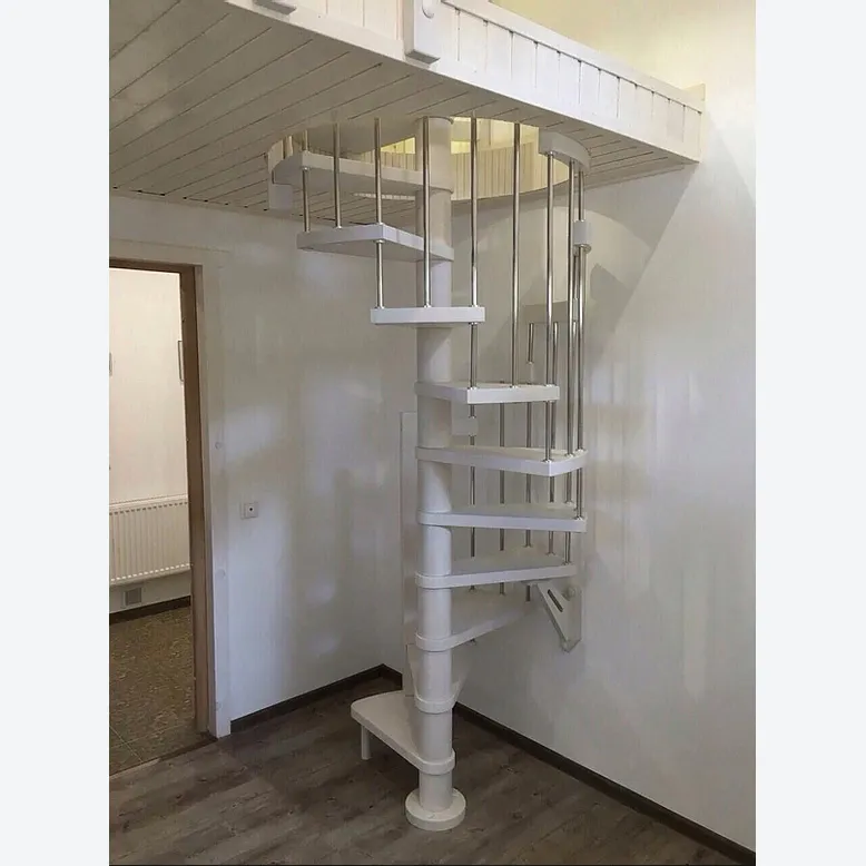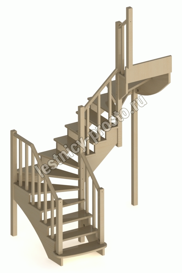 Ступени и поручень лестницы выполнены из бука, остальные элементы из сосны. Возможно изготовление данной модели полностью из бука.