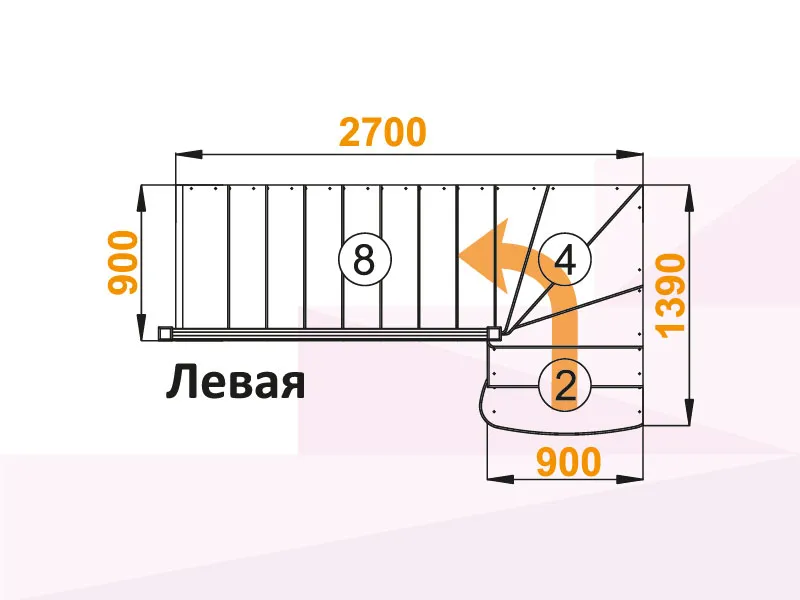 Лестница К-001М/1 с поворотом налево