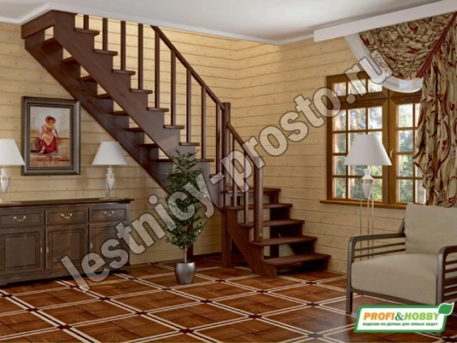 Ступени и поручень лестницы изготовлены из дуба, остальные элементы из сосны.