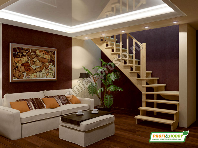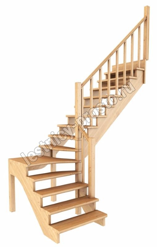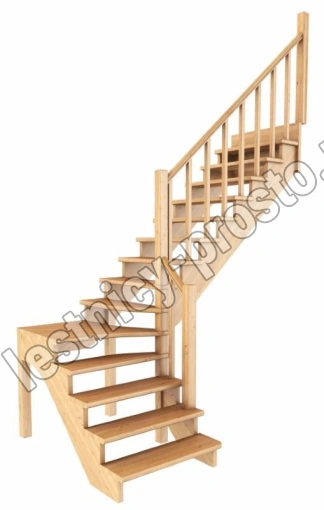 Ступени и поручень лестинцы изготовлены из дуба, остальные элементы из сосны. Возможно изготовление данной модели полностью из дуба. Базовый комплект включает в себя деревянные элементы лестницы и ограждения без какого-либо покрытия.