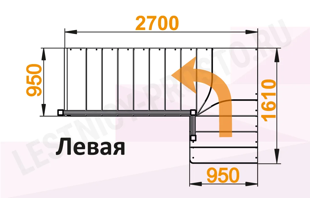 Схема лестницы К-031М/2 с поворотом налево