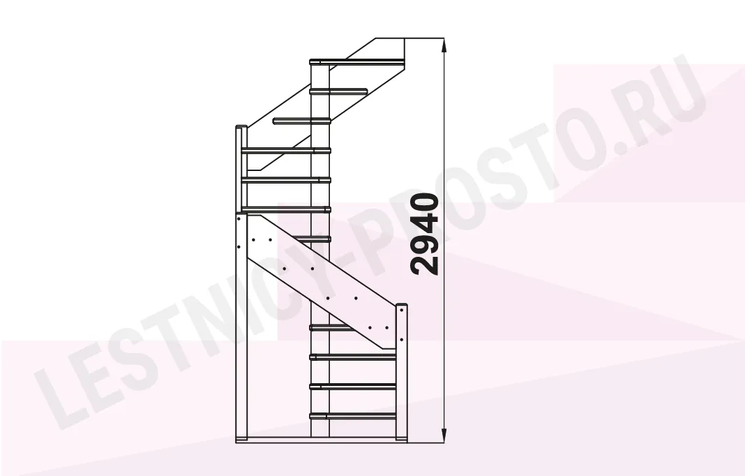 Схема лестницы ЛС-1.2хм с поворотом налево