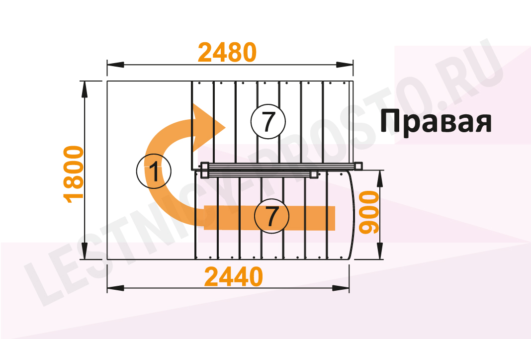 Обратите внимание! Данный вариант лестницы изготовлен из сосны эконом-класса, имеющей заметные серые/синие вкрапления цвета - это не отражается на прочности лестницы, но может быть заметно при покраске в светлые тона.