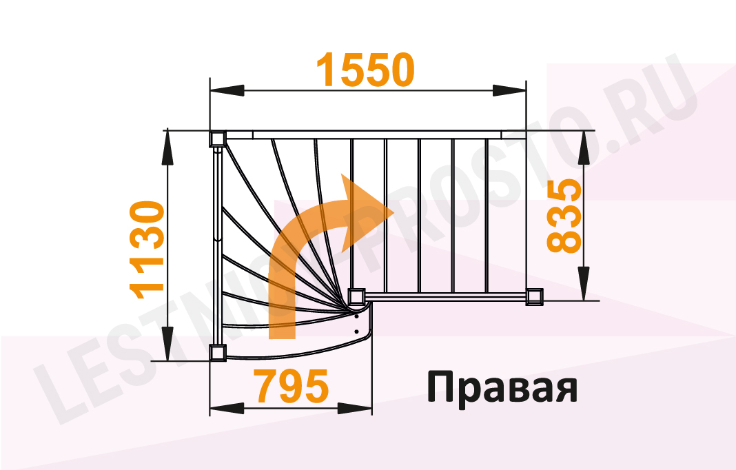 Схема лестницы ЛС-91М+2 с поворотом направо
