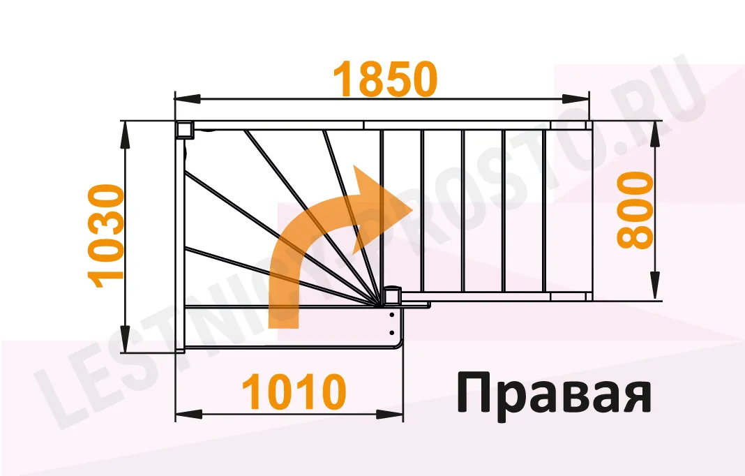 Схема лестницы ЛС-92М с поворотом направо