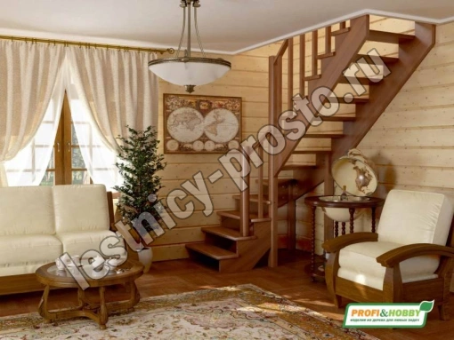 Ступени и поручень лестницы изготовлены из ясеня, остальные элементы из сосны.