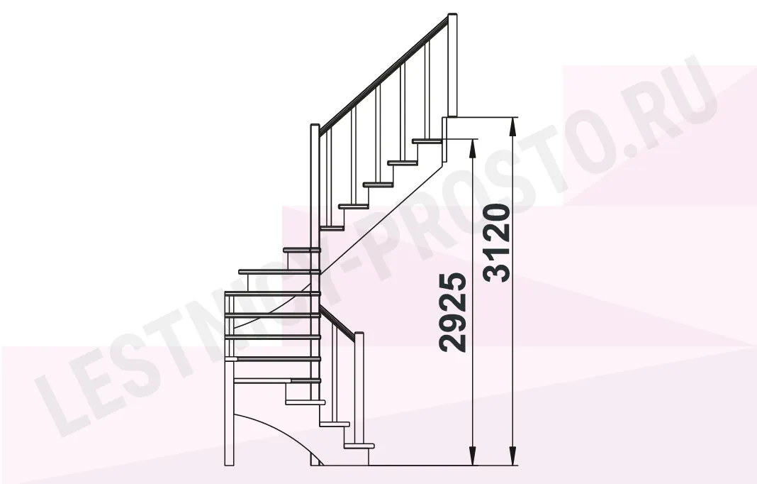 Схема лестницы К-003М/4 с поворотом налево