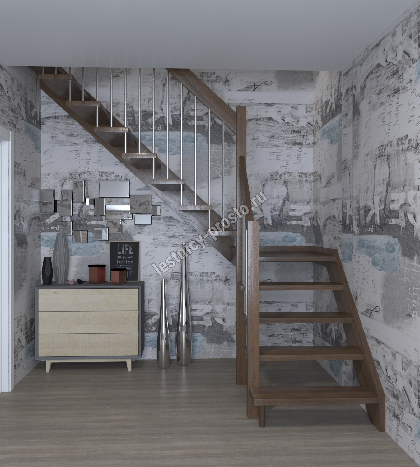 Лестница Prosto Console г-образная забежная дуб, h270 см (11 ступеней)