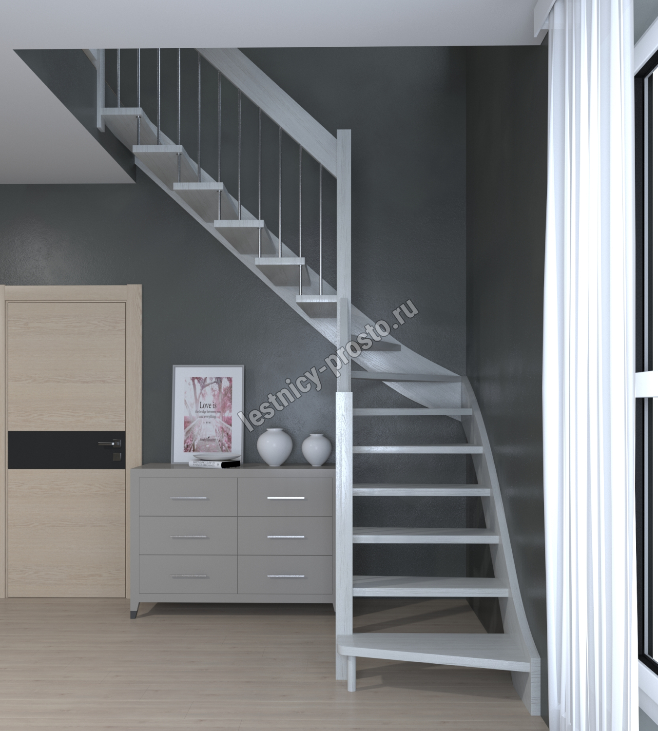 Лестница Prosto Console г-образная забежная дуб, h292.5 см (12 ступеней)