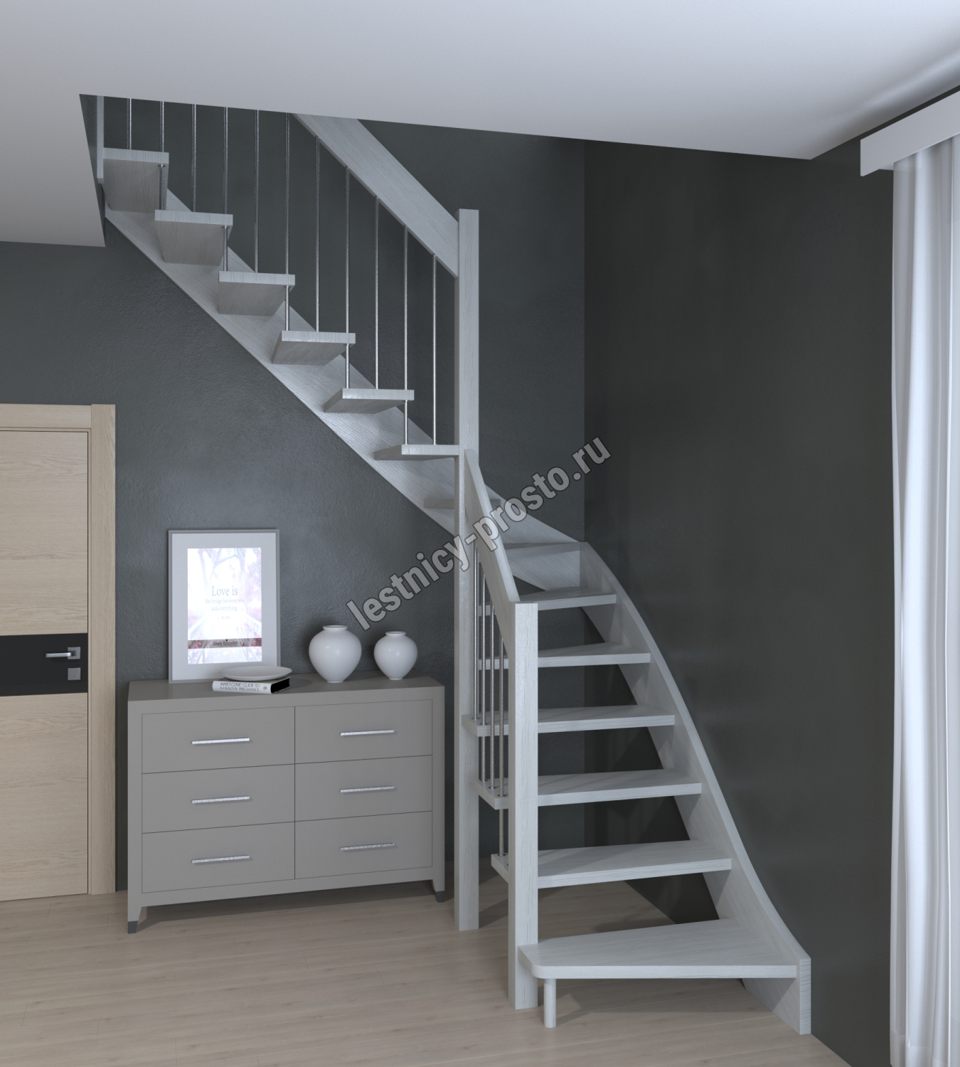 Лестница Prosto Console г-образная забежная сосна, h247.5 см (10 ступеней)