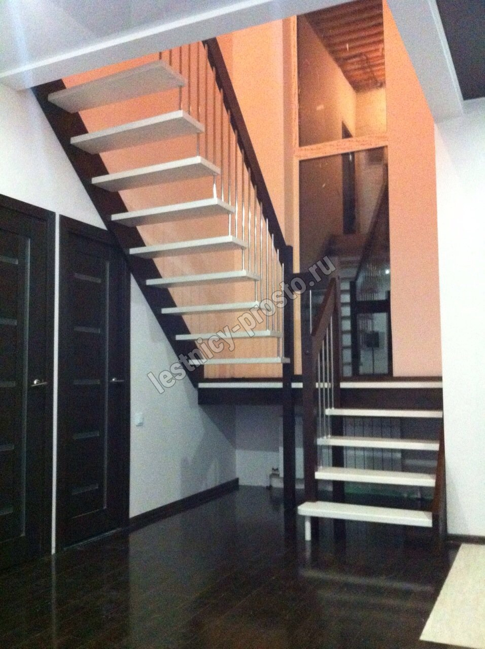 Надёжная современная лестница выполнена по немецкой технологии. Стоимость указана для лестницы с ограждением (с одной стороны); Поставляется в разобранном виде, в комплекте необходимый крепёж; Лестницу можно собрать самостоятельно; Так же, вы можете заказать услугу монтажа нашими специалистами; 4 вида породы дерева для изготовления лестницы: сосна, бук, ясень, дуб; возможна комбинированная лестница: из сосны (ступени бук, ясень, дуб); Деревянные элементы без какого-либо покрытия, отшлифованы, готовы к покраске. За дополнительную плату, вы можете изменить любые параметры, а именно: увеличить глубину ступени; увеличить ширину марша до 900 мм. и выше; заказать подступенки к лестнице; заказать отделку перекрытия (между 1-м и 2-м этажами); изготовить дополнительный промежуточный марш; заказать ограждение 2-го этажа; покраска в любой цвет или несколько цветов или покрытие защитными средствами; дополнение балясины из нержавеющей стали деревянными элементами; покраска балясин из нержавеющей стали порошковой краской в цвет RAL.