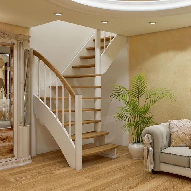 Лестница Универсал изготавливается как с поворотом направо, так и с поворотом налево. Под заказ возможно изготовление лестницы Универсал с высотами этажа: 2300 мм, 2500, мм, 2700 мм, 2900 мм, 3100 мм. В стандартной комплектации лестница поставляется в натуральном цвете, то есть без окрашивания. Первая ступень может быть пригласительной (со скругленными краями или прямой). Базовые ограждения можно заменить на ограждения любого другого вида.