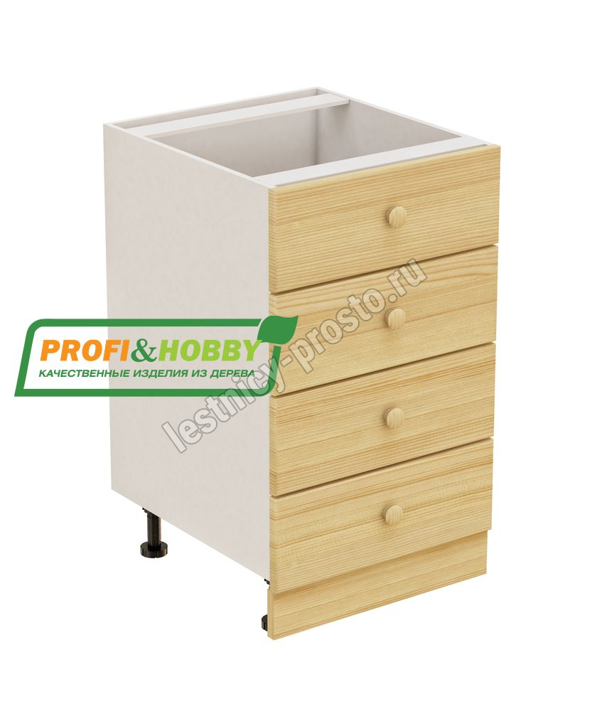 Тумба 4 ящика 500х530х720 + фасад сосна бесцветный акриловый лак
