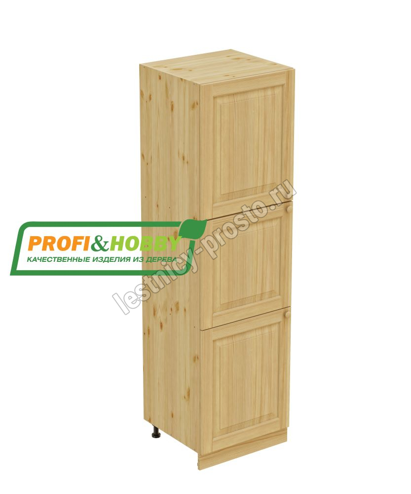 Шкаф высокий (пенал) изготовлен из 100% массива дерева, без шпона и без МДФ/ДСП.