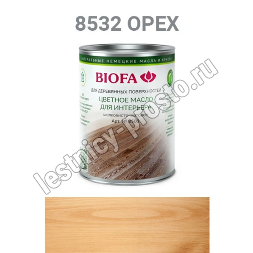BIOFA Color-Oil For Indoors - не содержащий растворителей продукт, состоящий из высококачественных биомасел и восков. Используется для придания цветового оттенка поверхности древесины и в качестве износостойкого покрытия для мебели, лестниц и всех видов деревянных напольных покрытий, пробки.