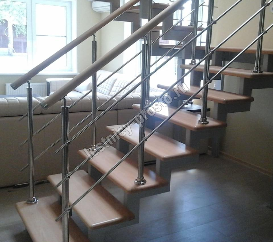 Основой лестницы Prosto Double 50×100 служит усиленный двойной металлический каркас из профильной трубы 50×100 мм (включая 4 опоры на пол под поворотом), который обеспечивает надёжную прочность конструкции и современный актуальный дизайн. Данный вариант лестницы предполагает поворот на 180° через забежные ступени. Под заказ возможно изготовление каркаса под поворотную площадку.