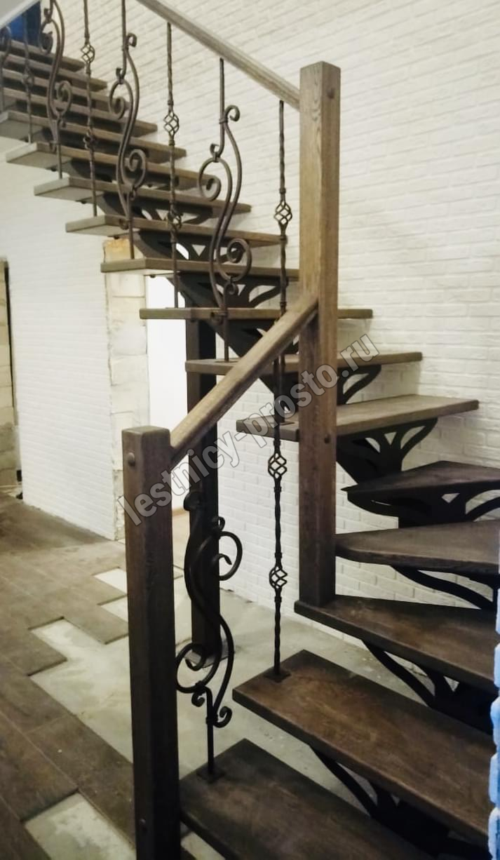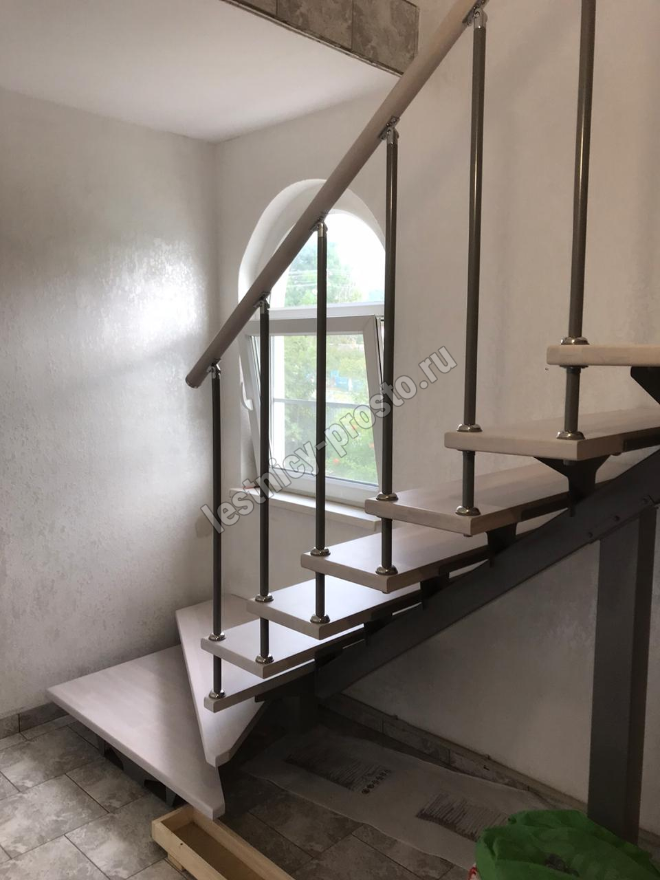 Лестница PROSTO MONO Г-образная h315 см, ступени бук