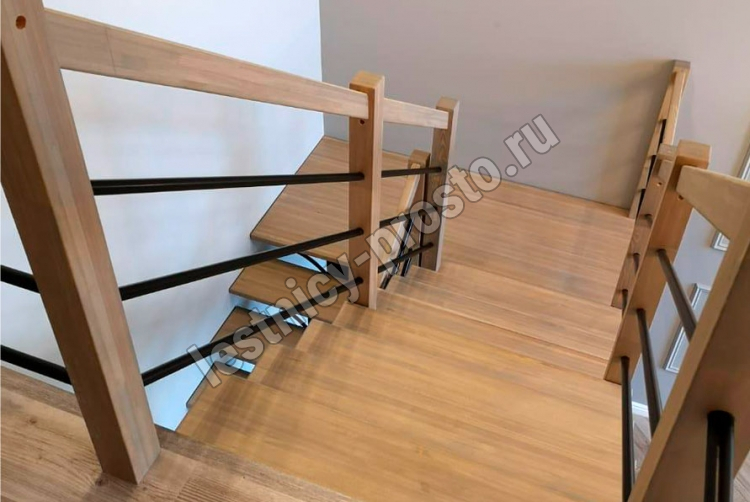 Лестница PROSTO MONO П-образная, h225 см, ступени бук