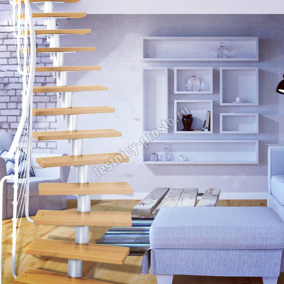 Модульная лестница Dixi серебро, светлая ольха