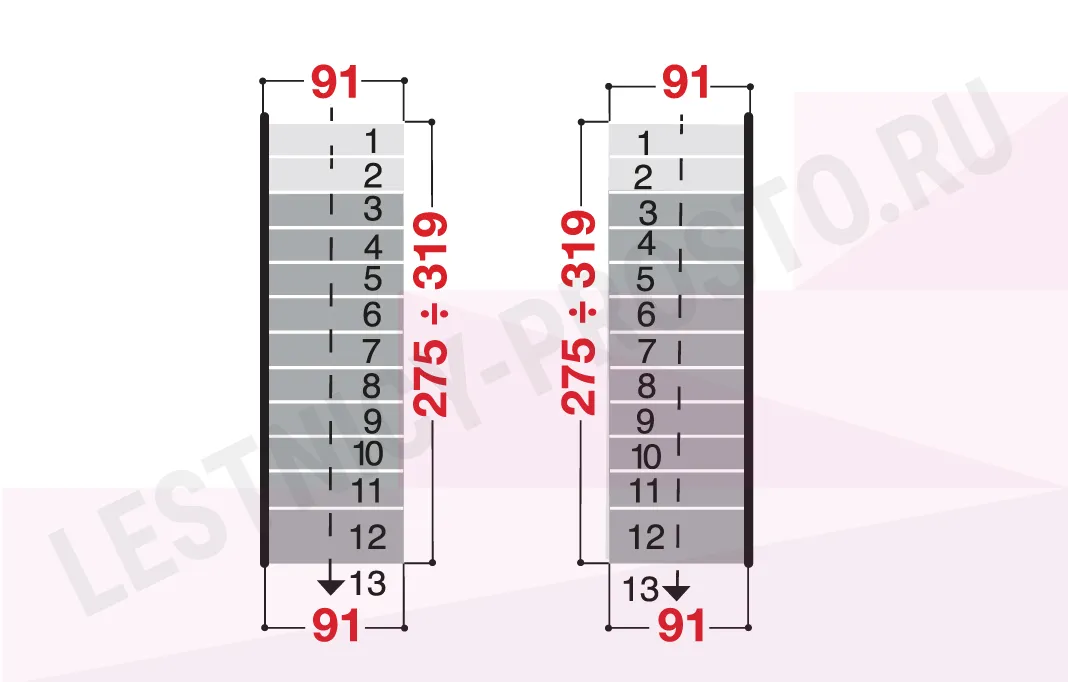 Высота лестницы 2250 - 3030 мм