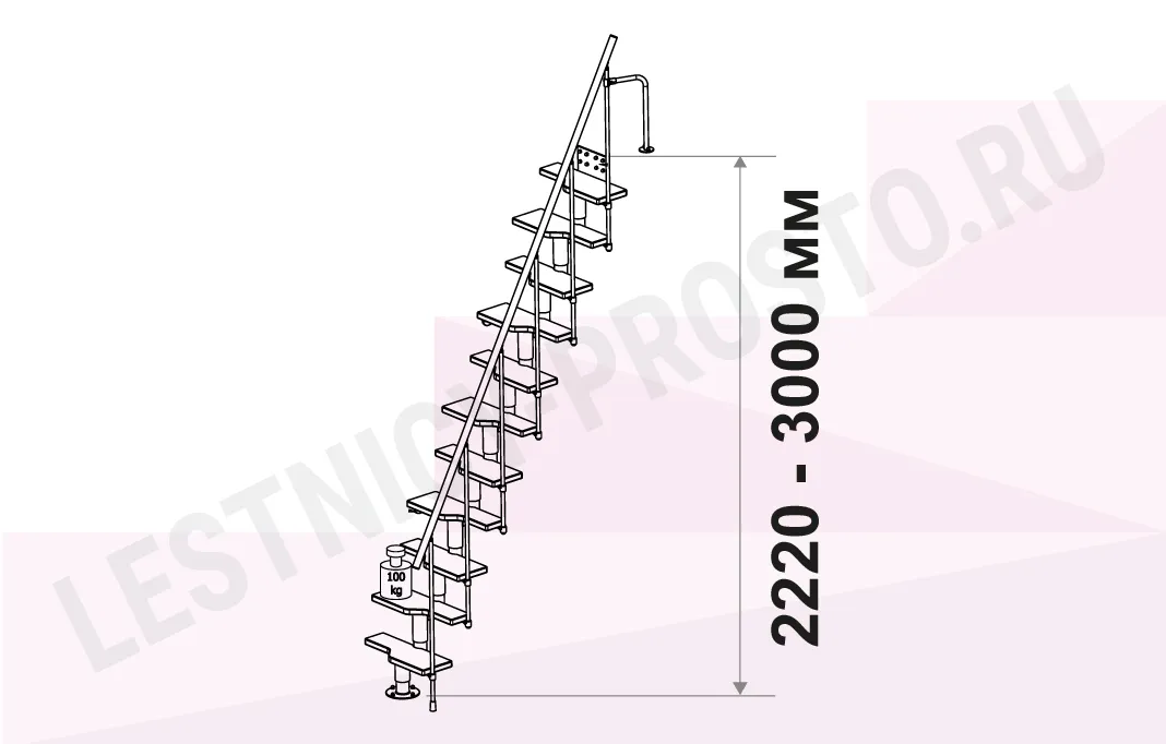 Высота лестницы 2220 - 3000 мм