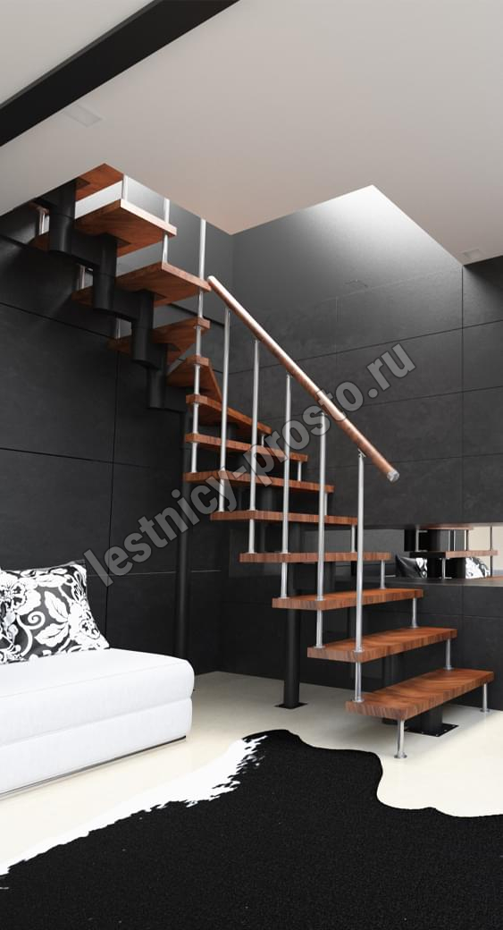Каркас лестницы представляет собой набор модулей, которые комплектуются уже готовыми к монтажу.
