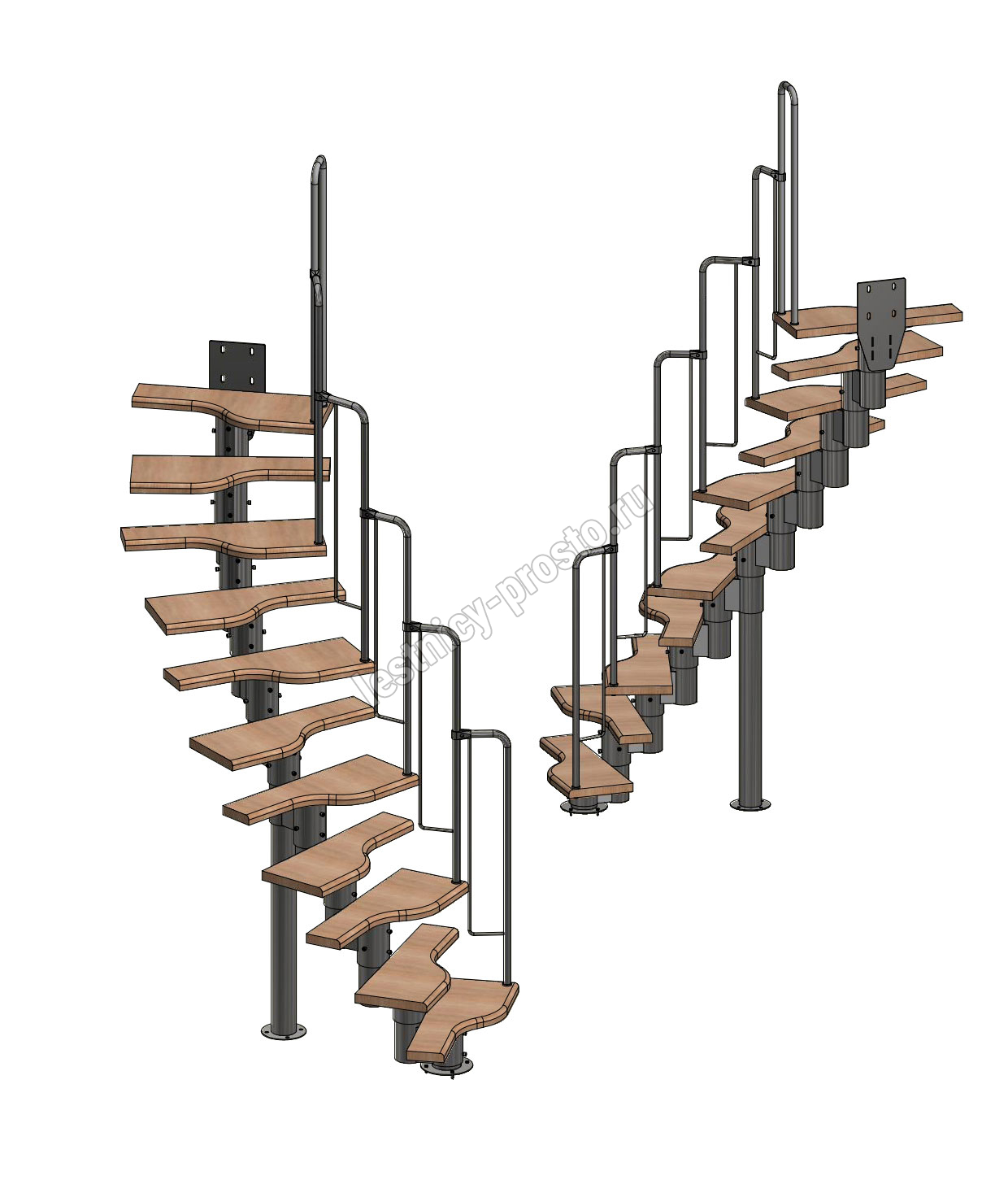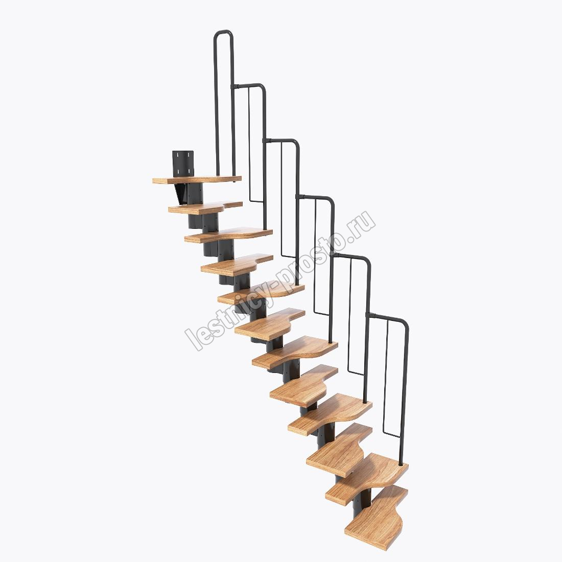 Лестница Prosto Urban Black гусиный шаг 700 мм, h198-288 см (11 ступеней), ясень