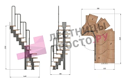 Лестница Prosto Urban Black гусиный шаг 600 мм, h198-288 см (11 ступеней), дуб