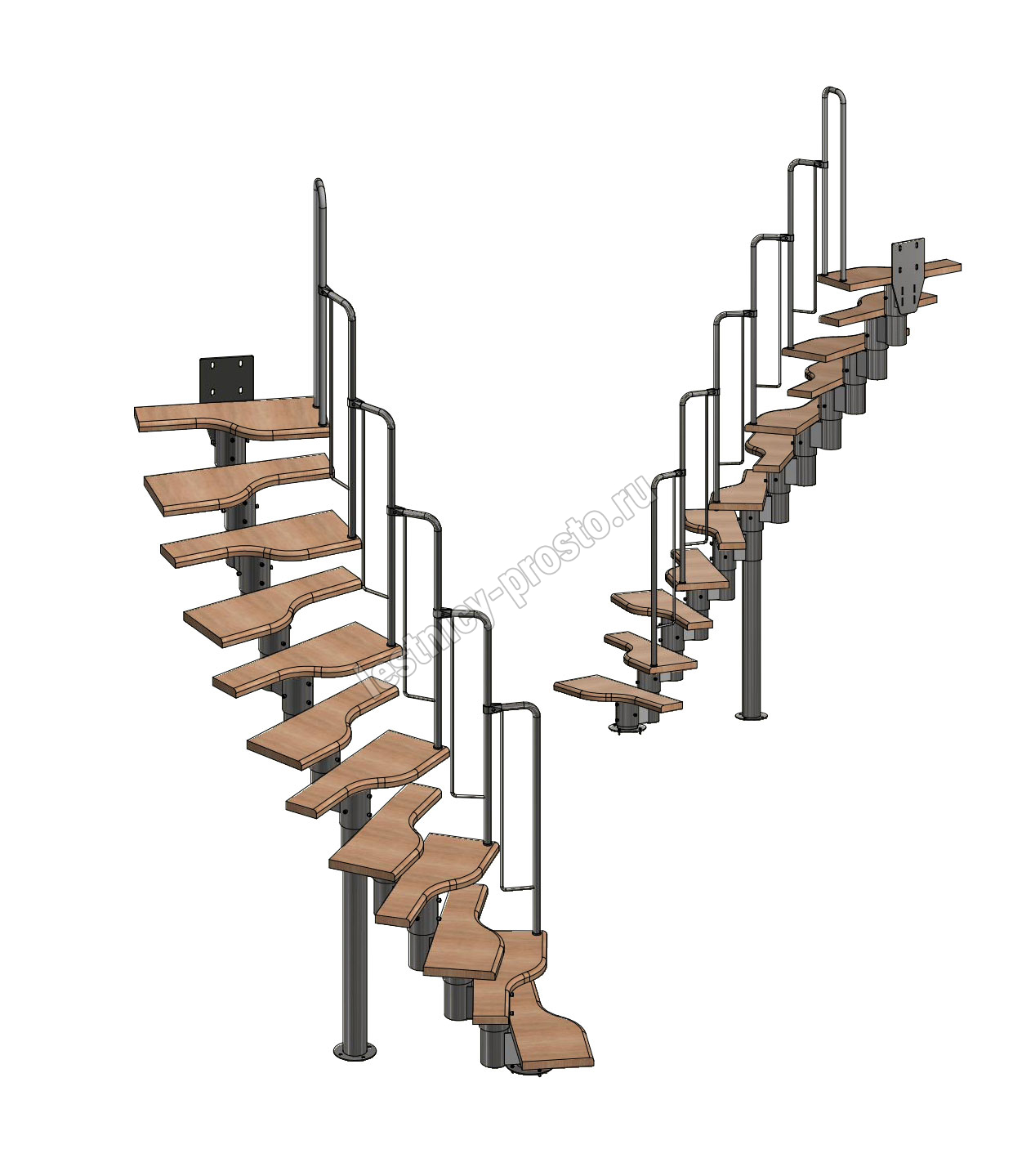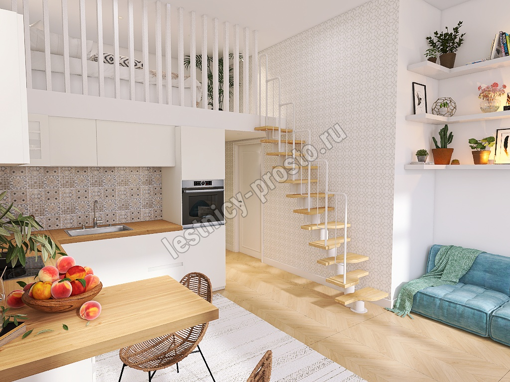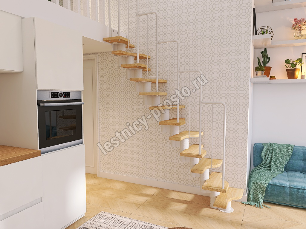 Лестница Prosto Urban White гусиный шаг 700 мм, h216-312 см (12 ступеней), дуб