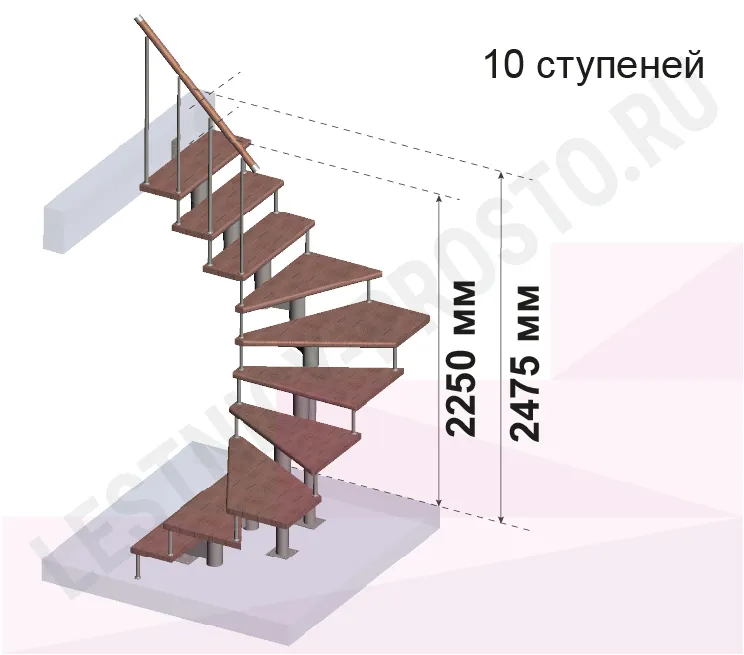 Модульная лестница PROSTO MODULE П-образная/ h247.5 см