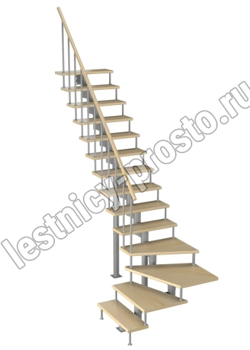 Модульная лестница Фаворит 180 2520-2660, Серый, Лиственница, Нержавеющая сталь