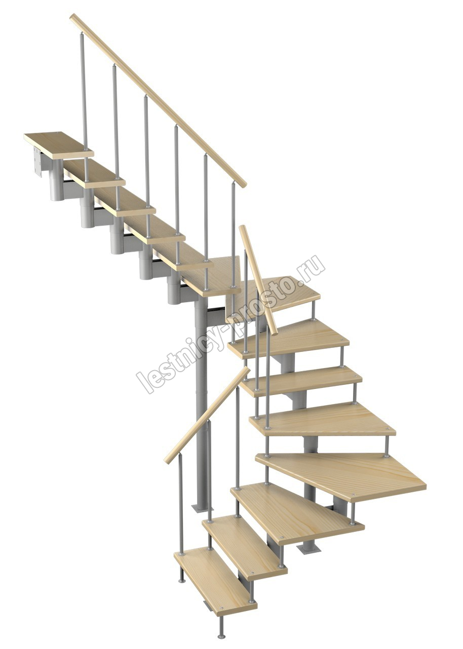 Модульная лестница Спринт 225 3150-3290, Серый, Бук, Нержавеющая сталь