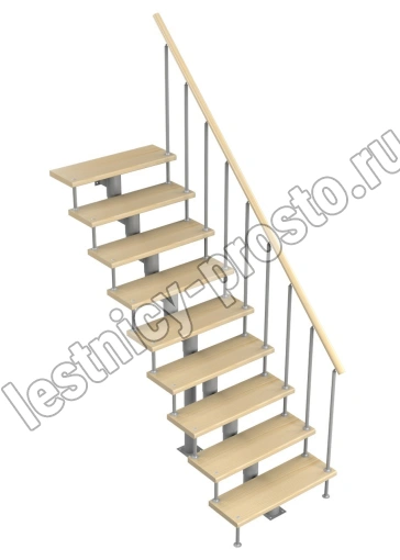 Модульная лестница Стандарт 2025-2115, Серый, Лиственница, Нержавеющая сталь