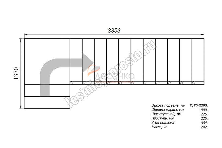 Модульная лестница Статус 225 3150-3290, Черный, Лиственница, Нержавеющая сталь