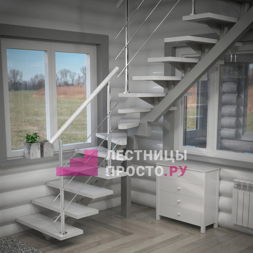 Модульная малогабаритная лестница Эксклюзив 2025-2250, Белый, Бук, Крашеная