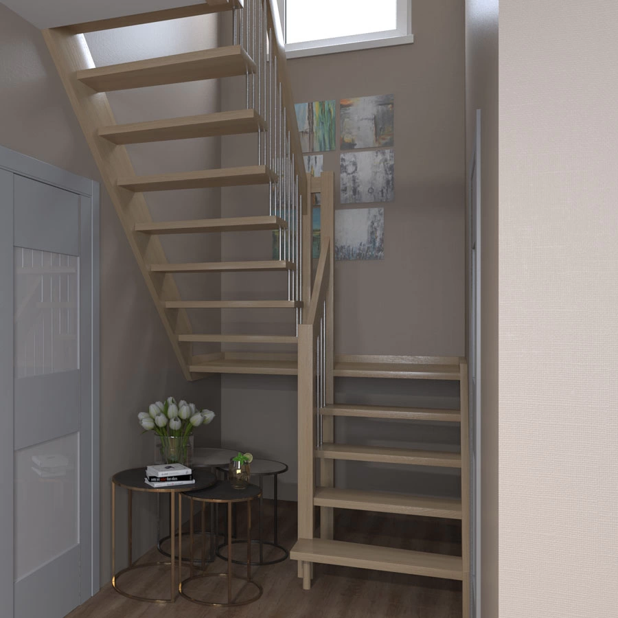 Модульная малогабаритная лестница Компакт 2250-2475, Серый, Сосна, Нержавеющая сталь