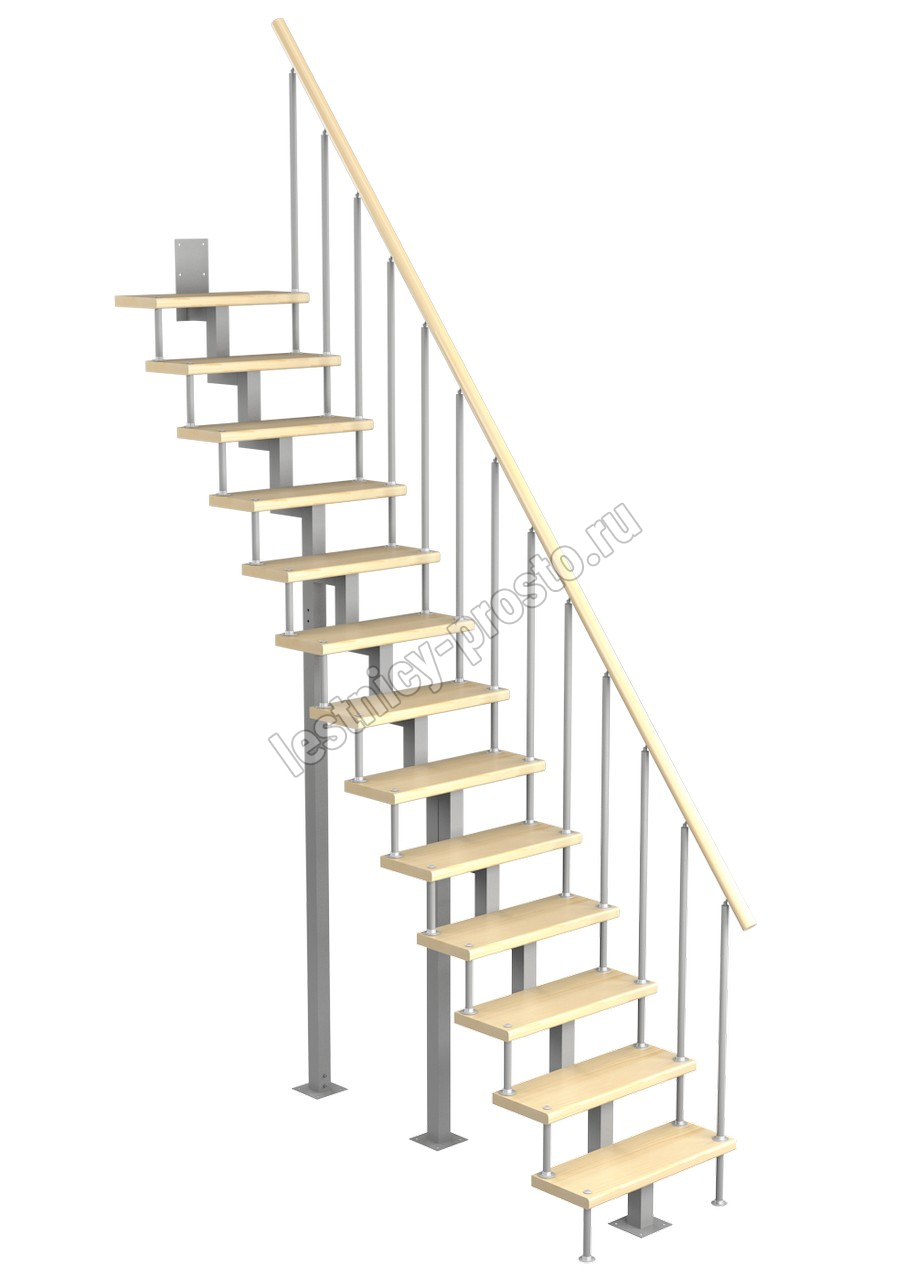 Модульная малогабаритная лестница Линия 2925-3150, Серый, Бук, Нержавеющая сталь