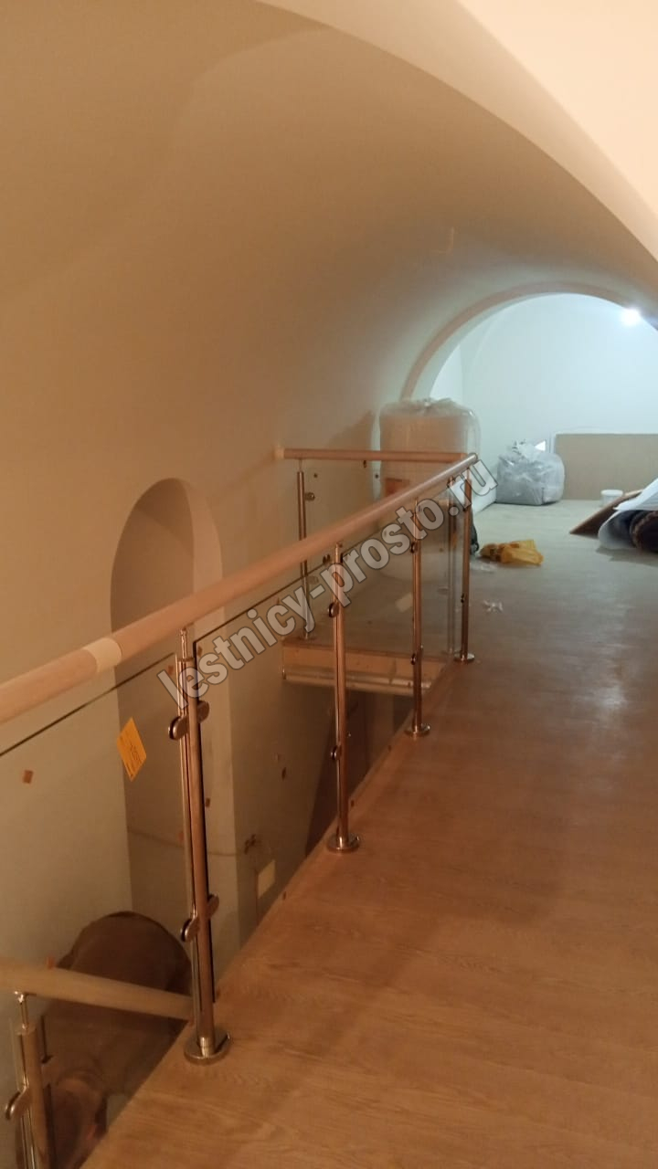 Ограждение из ударопрочного стекла, поручень пвх, стойки из нержавеющей стали.