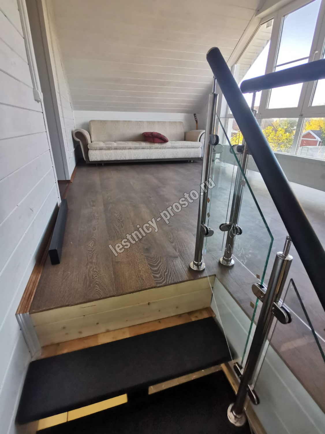 Ступени и поручень выполнены из срощенного бука.