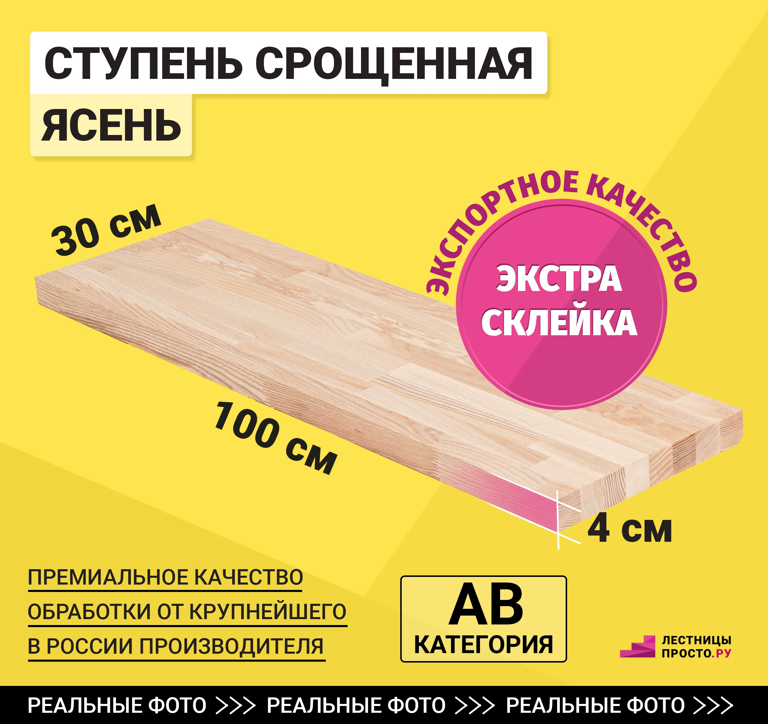 Данная ступень изготовлена из срощенного ясеня категории А/В.