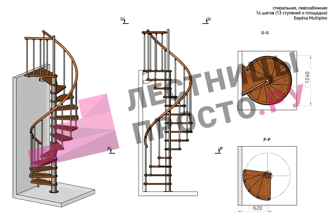 Винтовая лестница Prosto Spiral Black D120см, h296.9-338.1 см
